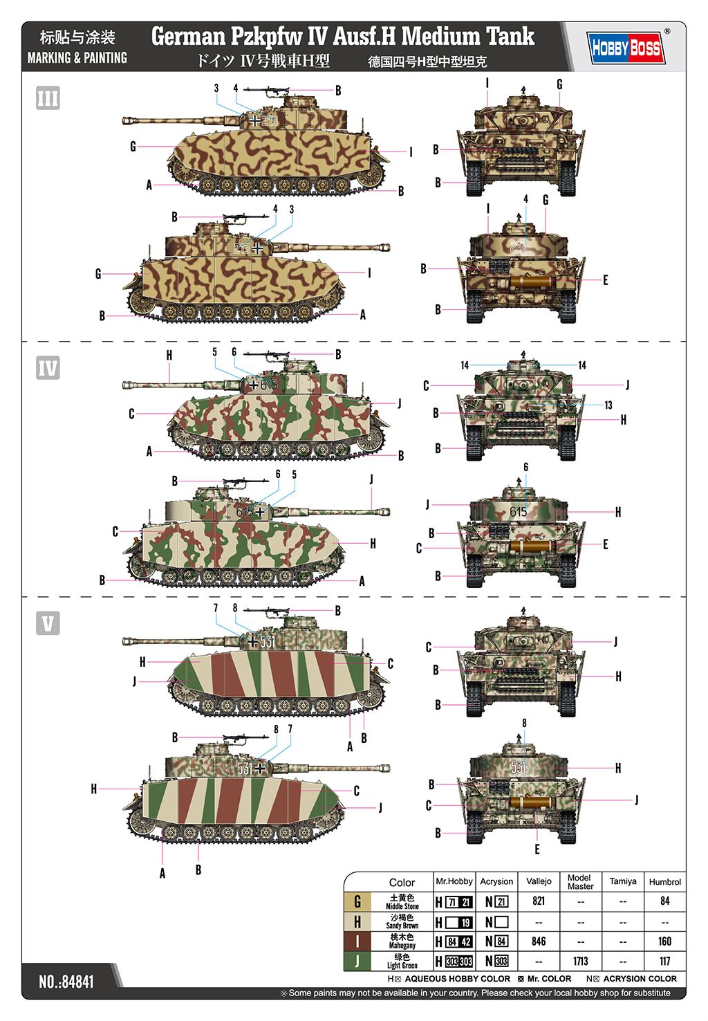 Описание к Сборная модель - German Pzkpfw IV Ausf.H Средний танк (Hobby Boss 84841) 1/48