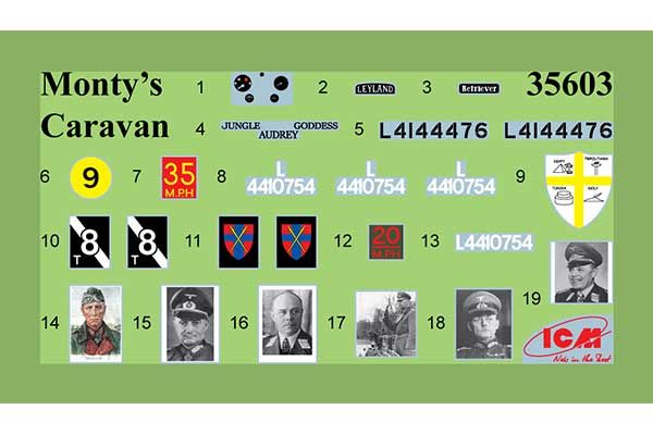 Описание к Сборные фигурки - Мобильный офис Монтгомери со штабом (ICM 35604) 1/35