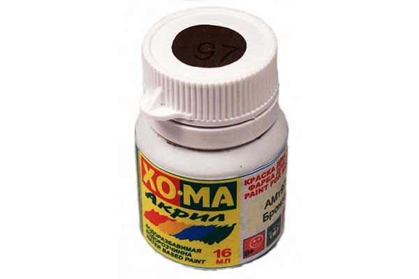 Акрилова фарба БРОНЗА АМт97 від компанії ХО-МА. Призначена для фарбування стендових масштабних моделей виконаних з пластика, дерева, металу. Не має запаху і не токсична. Підходить для фарбування як пензлем, так і аерографом. Ідеальне поєднання ціни та якості.