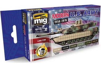 Набір акрилових фарб 6 шт - Сучасна армія США від компанії Ammo Mig (7159) - призначений для нанесення базового кольору і камуфляжів на сучасну бронетехніку США.