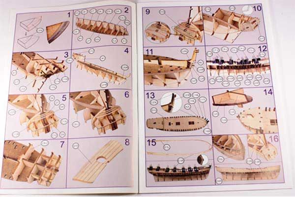 Комплектация:Вырезанные лазером деревянные детали.. тряпичные паруса.. металлический и пластиковый декор.. деревянные планки обшивки копуса
