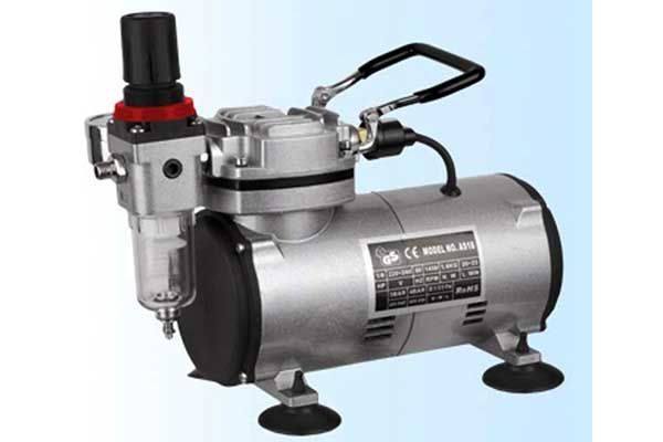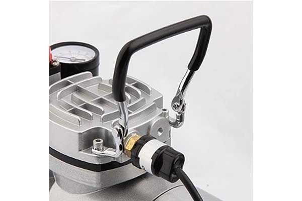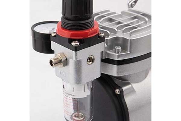 На выходе данного компрессора установлен редуктор с влагоотделителем, что позволяет регулировать давление воздуха подаваемого на аэрограф, а также очищать его от влаги, которая крайне нежелательна при работе. Также на компрессоре установлен, так называемый, "прессостат" (автоматический регулятор давления), который включает/выключает компрессор в зависимости от потребления воздуха.
