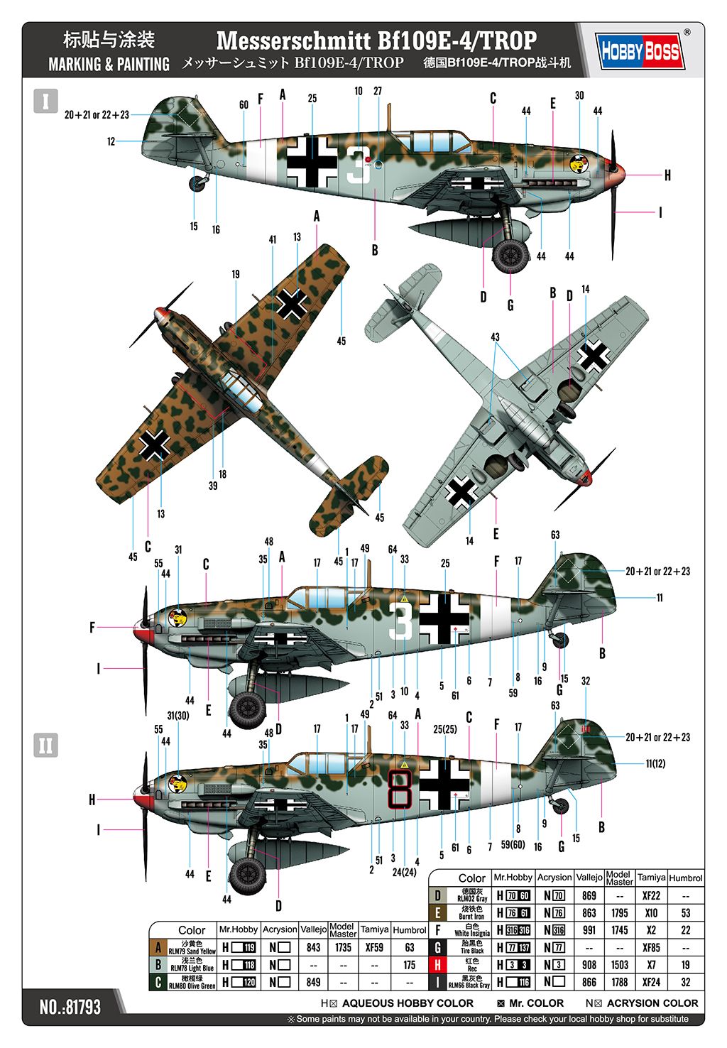 Описание к Сборная модель - Messerschmitt Bf109E-4/TROP (Hobby boss 81793) 1/48